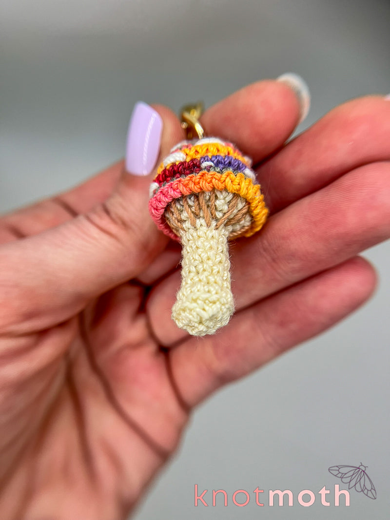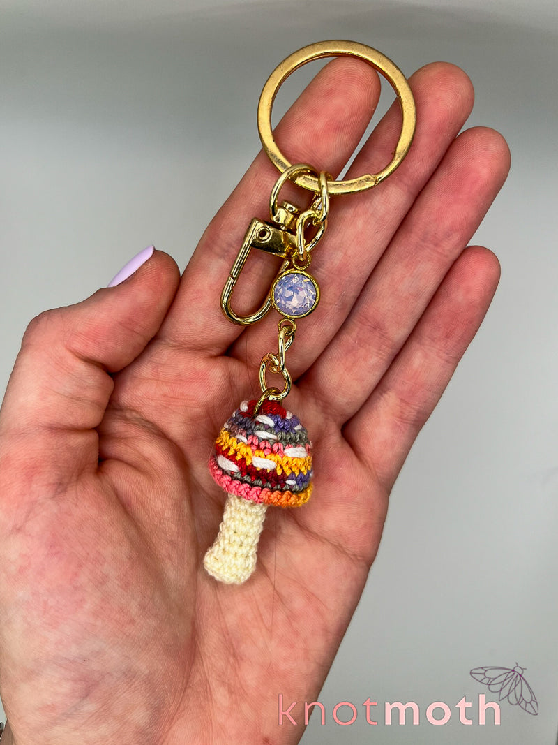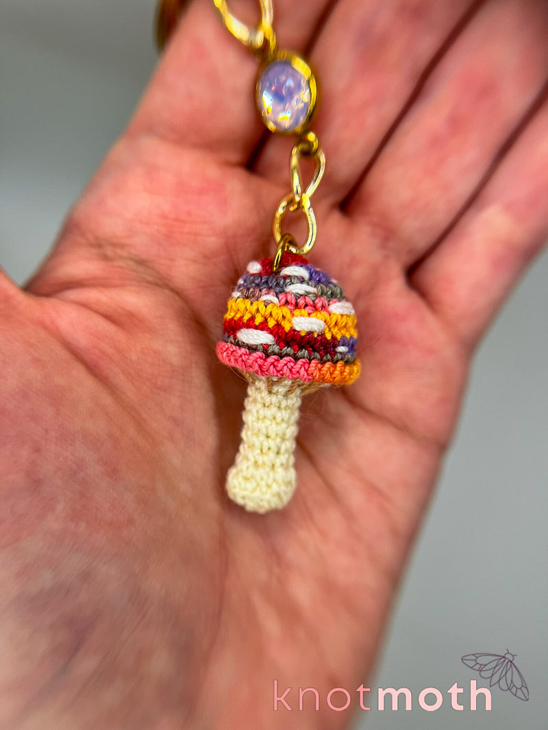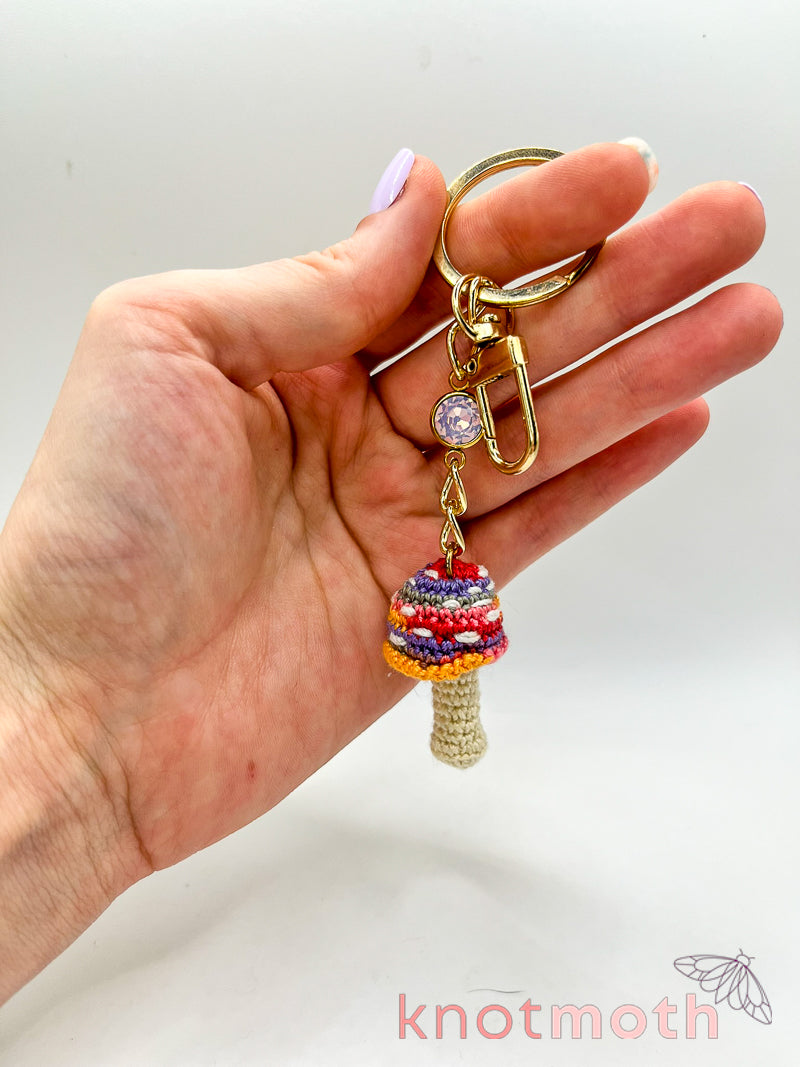 This adorable micro crochet mushroom keychain is the perfect handmade accessory that will bring a smile to your face each time you reach for your keys!