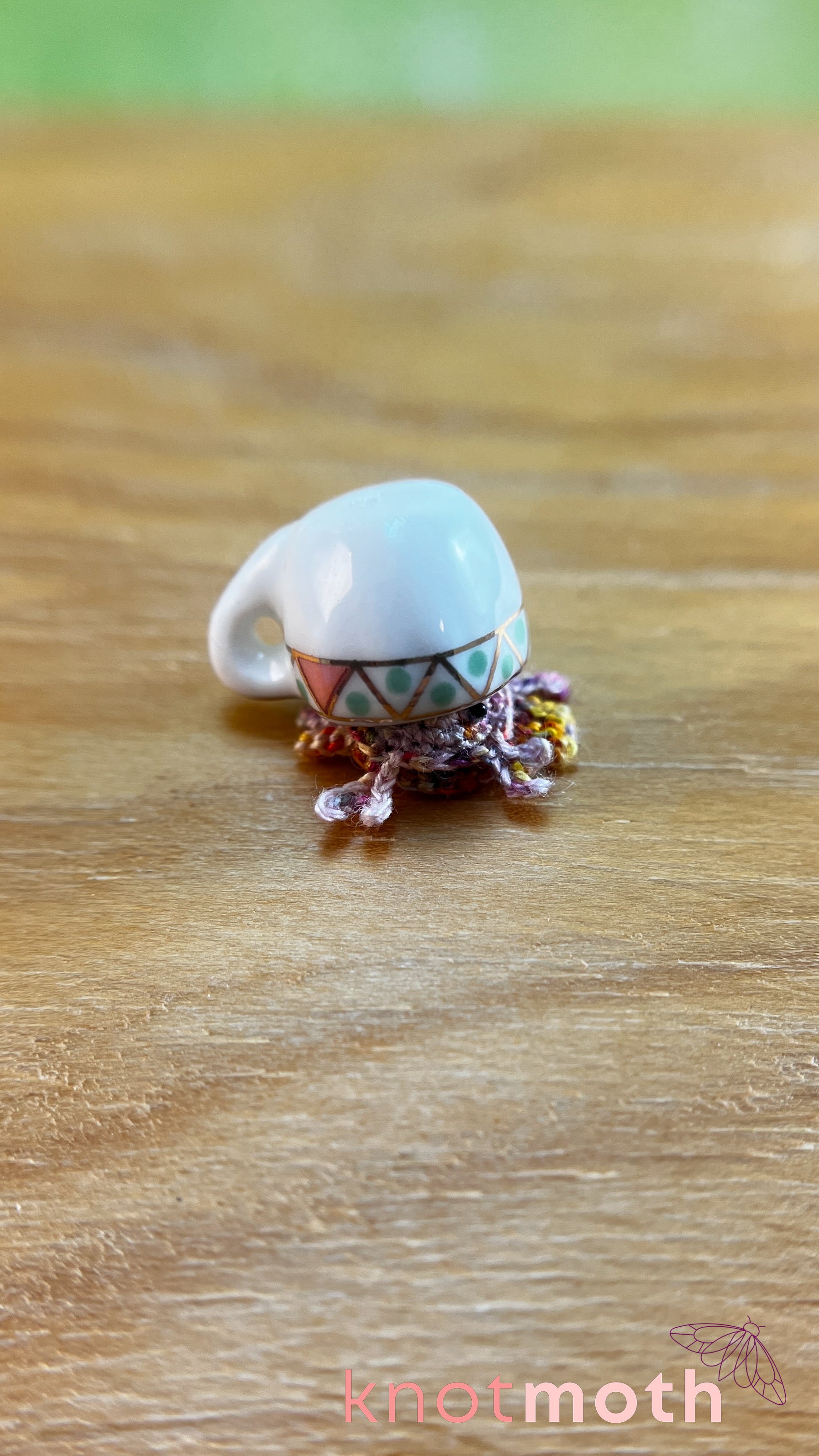 This dainty and intricately detailed removable micro crochet mug is the perfect accessory to show off your love of handmade miniature fiber art!
