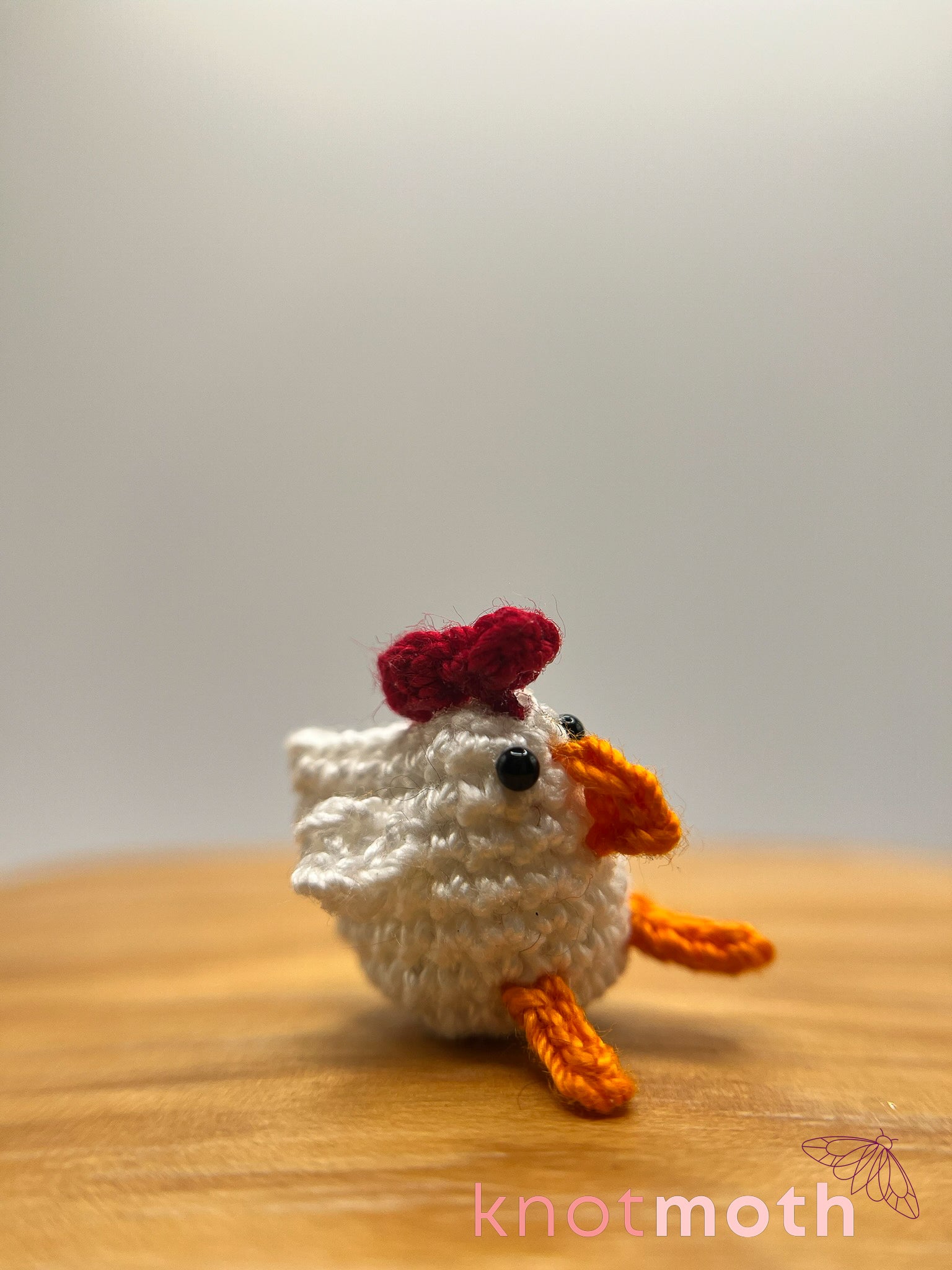 This adorable miniature crochet chicken plush is the perfect handmade trinket gift or treat for yourself!