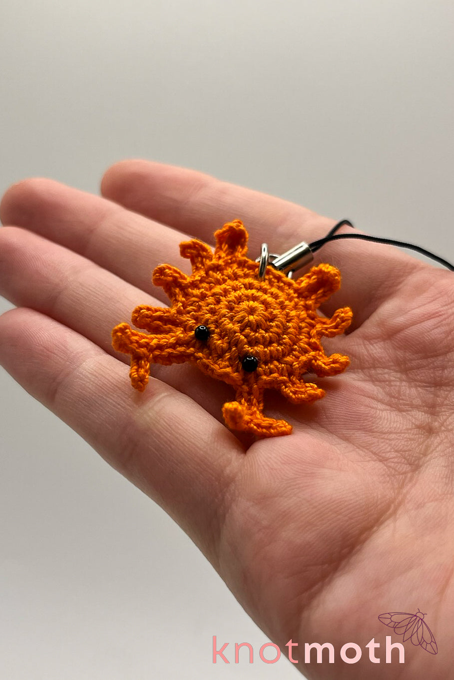 This adorable handmade micro-crochet crab plushie made with orange and white thread and a 1.0 mm crochet hook is the perfect accessory for lovers of ocean-themed fiber art!