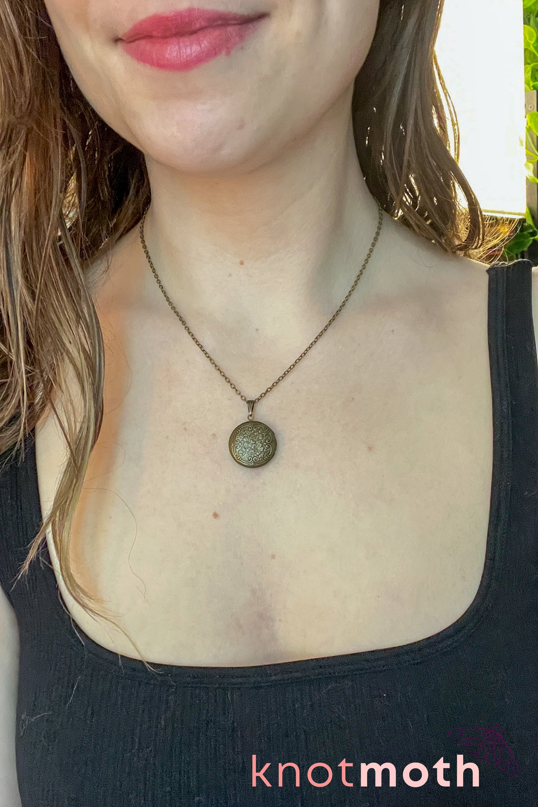 Show your love for someone special or treat yourself to a unique, elegant handmade masterpiece! This charming engraved bronze locket is filled with a vibrant yellow micro-crochet daffodil flower for a tiny, intricate piece of breathtaking jewelry!