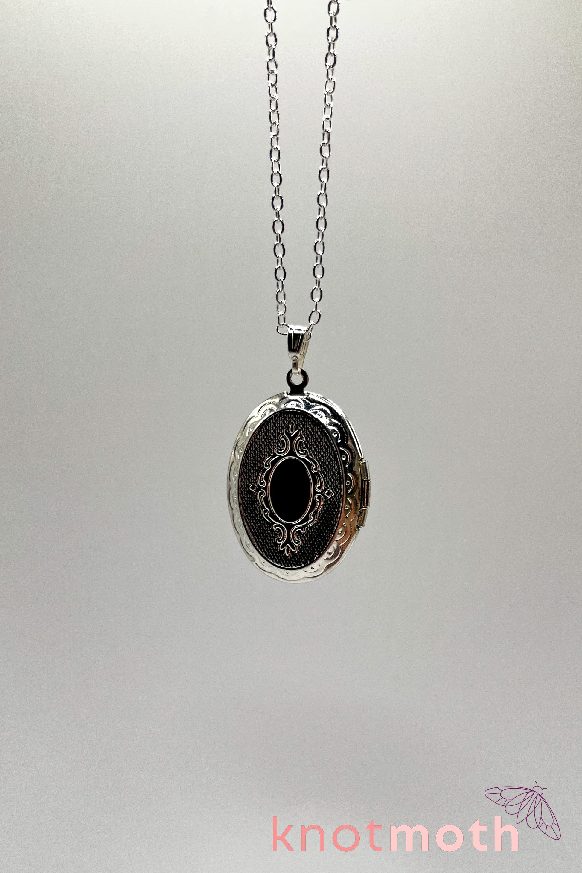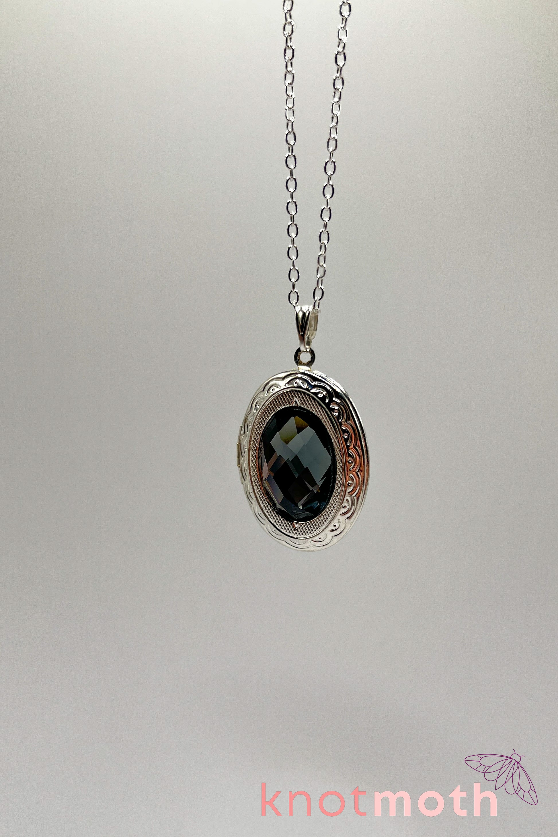 Show your love for someone special or treat yourself to a unique, elegant handmade masterpiece! This charming engraved silver locket with a black mirrored crystal is filled with beautiful blue micro-crochet hydrangea flowers for a tiny and intricate piece of simply breathtaking jewelry!