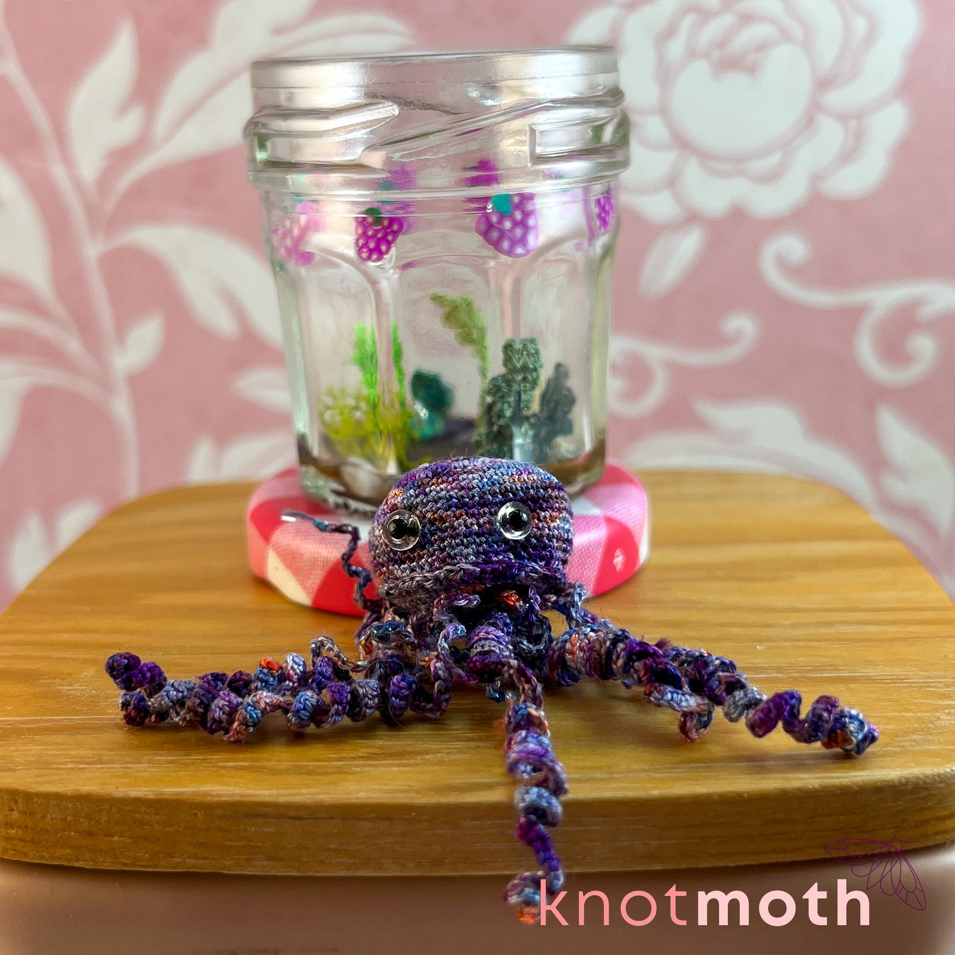 Jasmine Jellyfish Micro Crochet Aquarium Bonne Maman Jam Jar (removable, magnetic)
