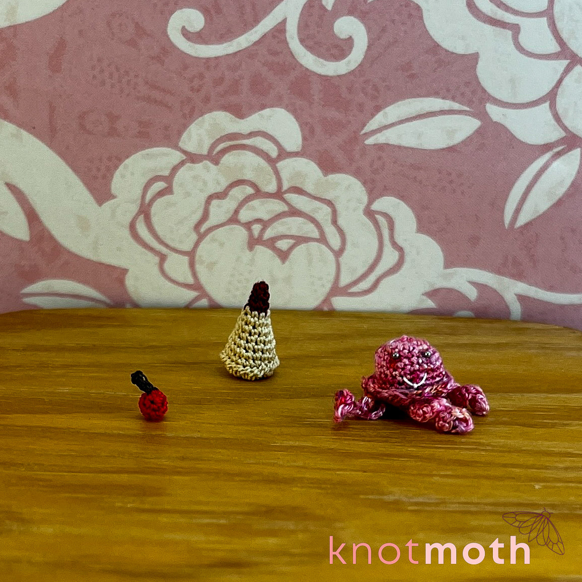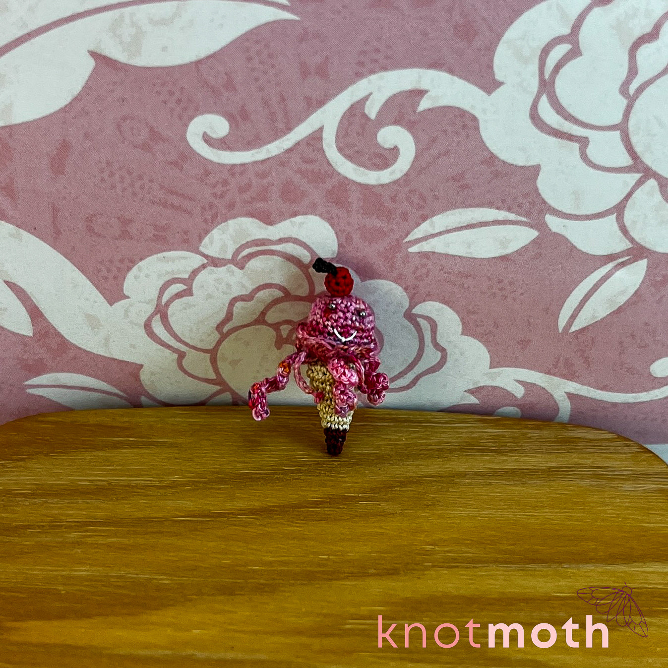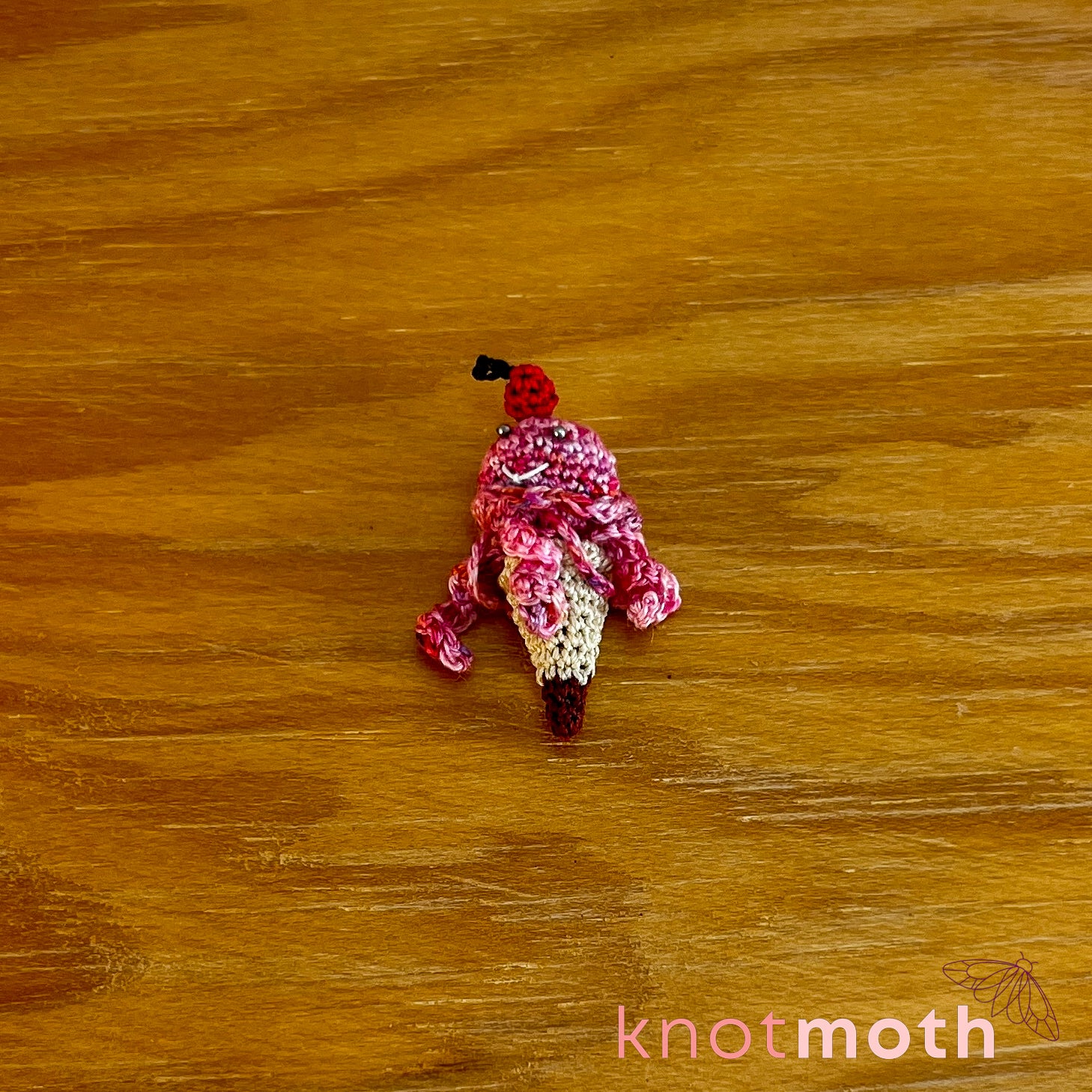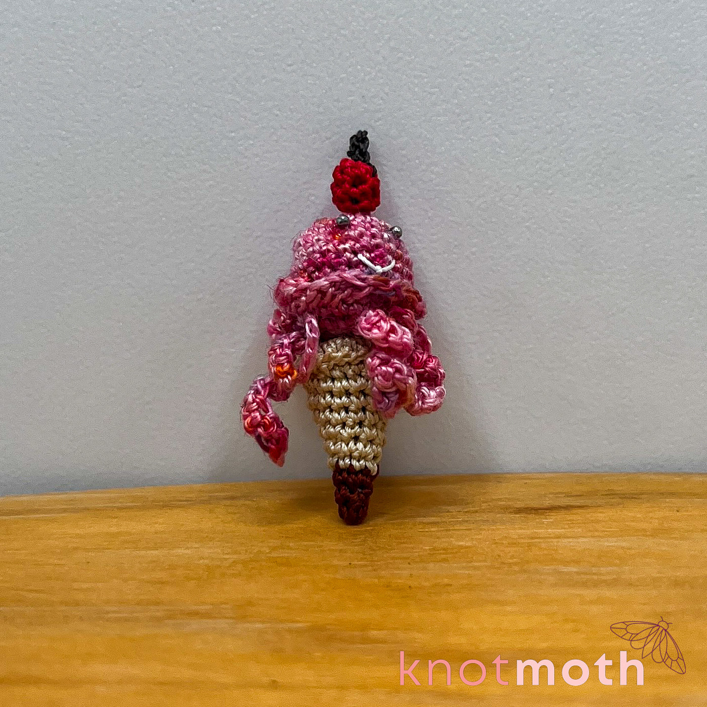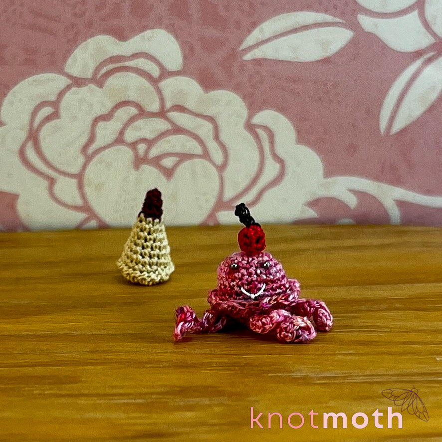 This captivating micro crochet jellyfish ice cream cone trinket is a fun toy for lovers of "sweet" handmade aquatic fiber art!