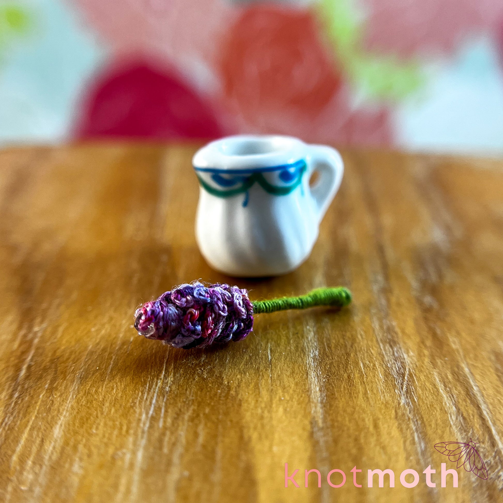 This lovely and delicate handmade micro crochet lavender flower in a miniature teapot is the perfect trinket to celebrate your love of botanical fiber art!