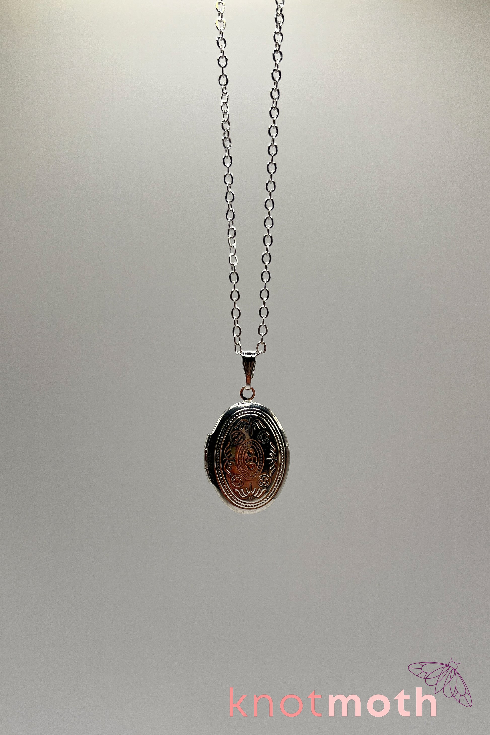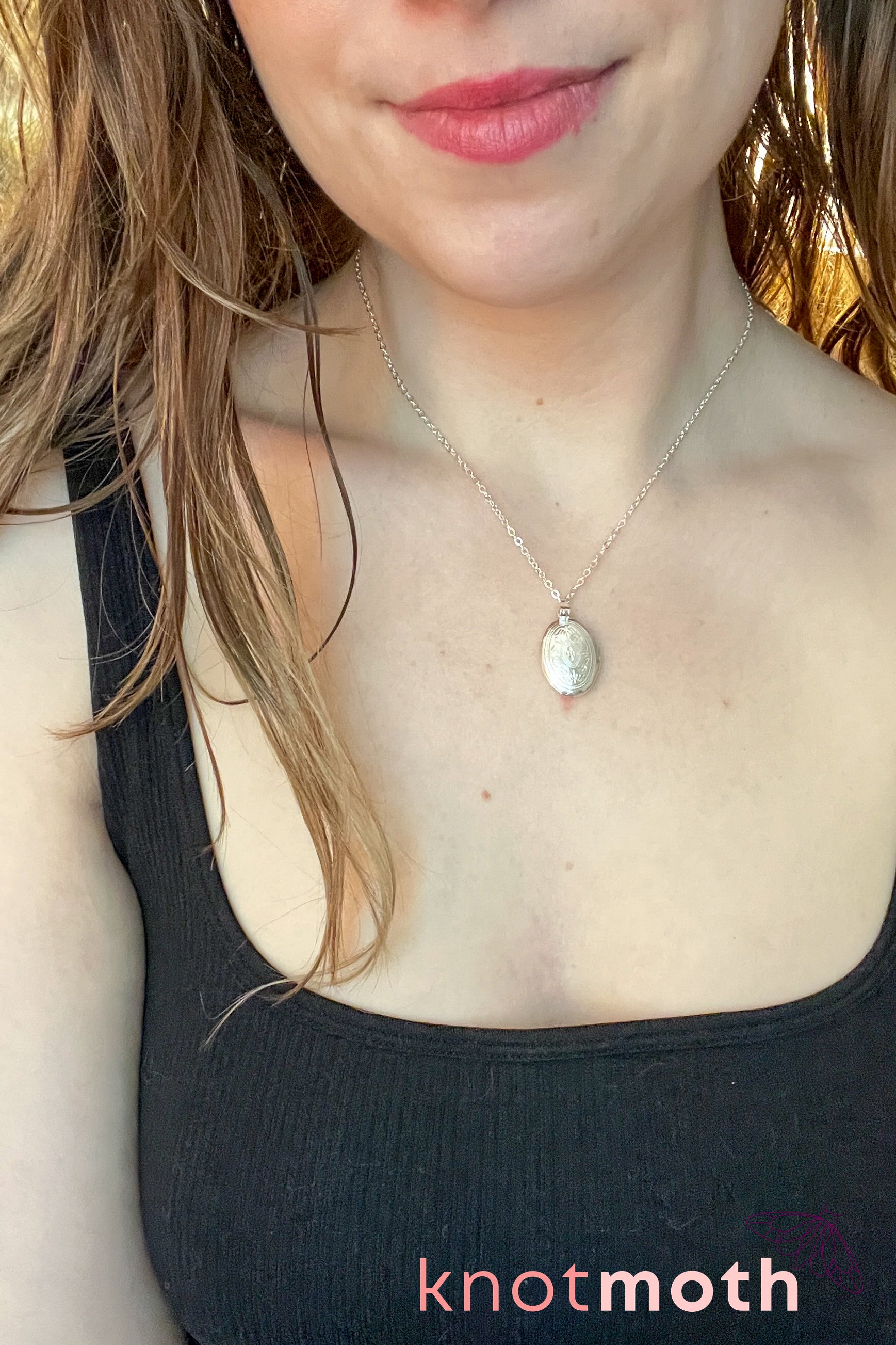 - Locket: 0.8 x 0.6 in. (2 x 1.5 cm.); Necklace chain: 18 in. (45.7 cm.)