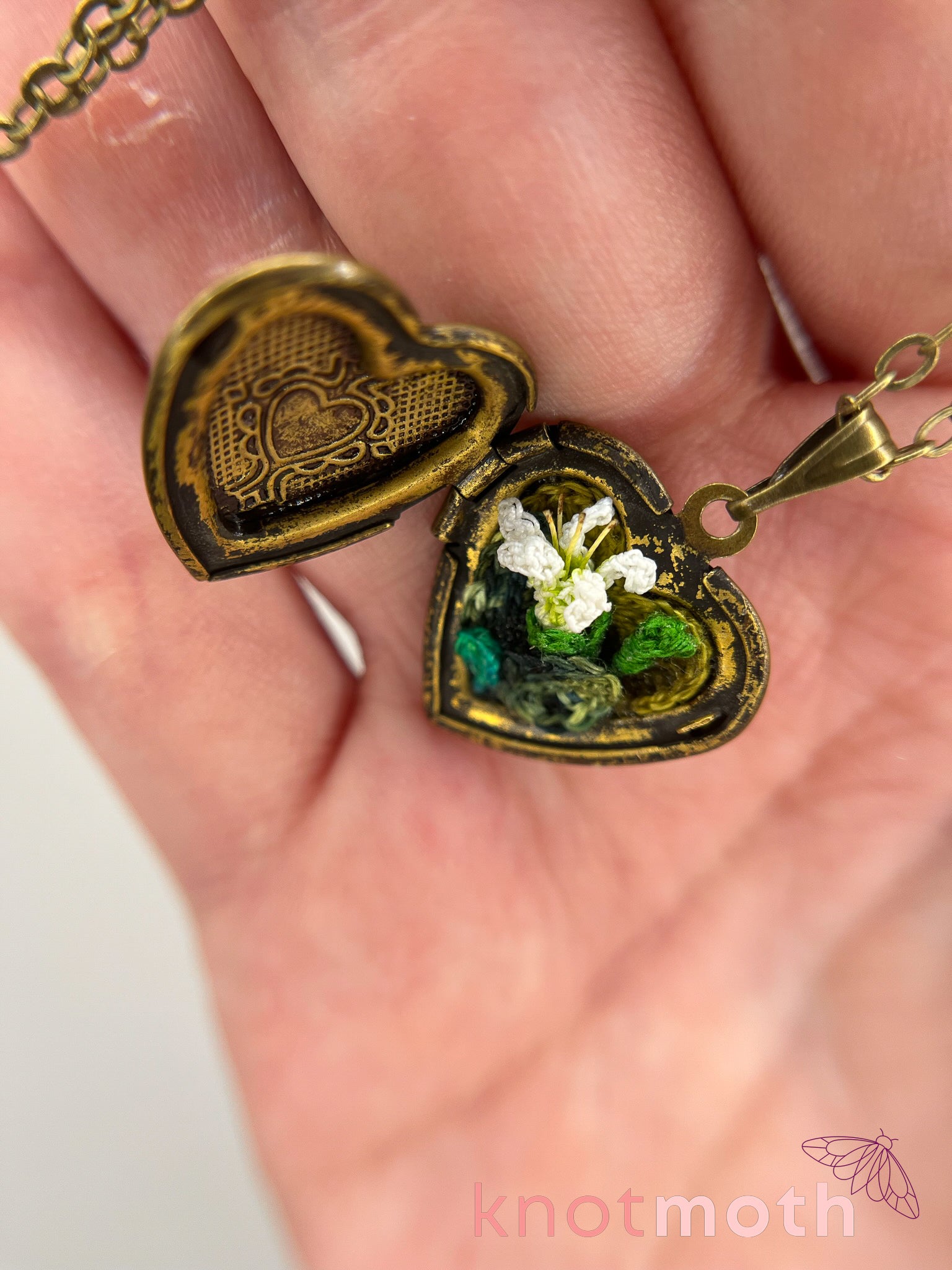 Lily (love, friendship) floriography micro-crochet locket