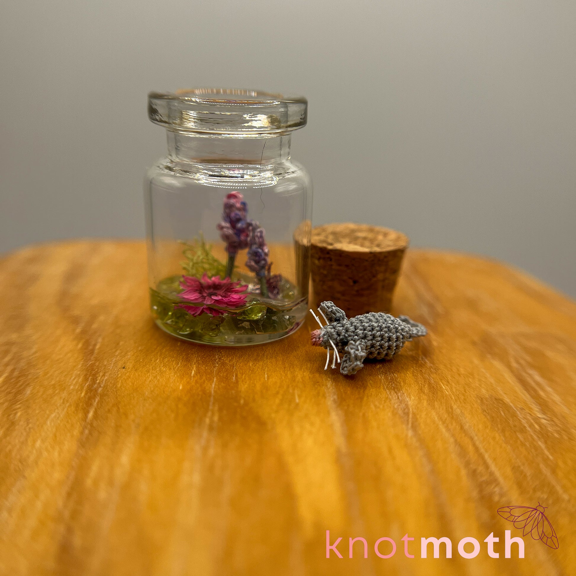 Mae Mouse and Lavender Micro Crochet Terrarium Jar (removable, magnetic)