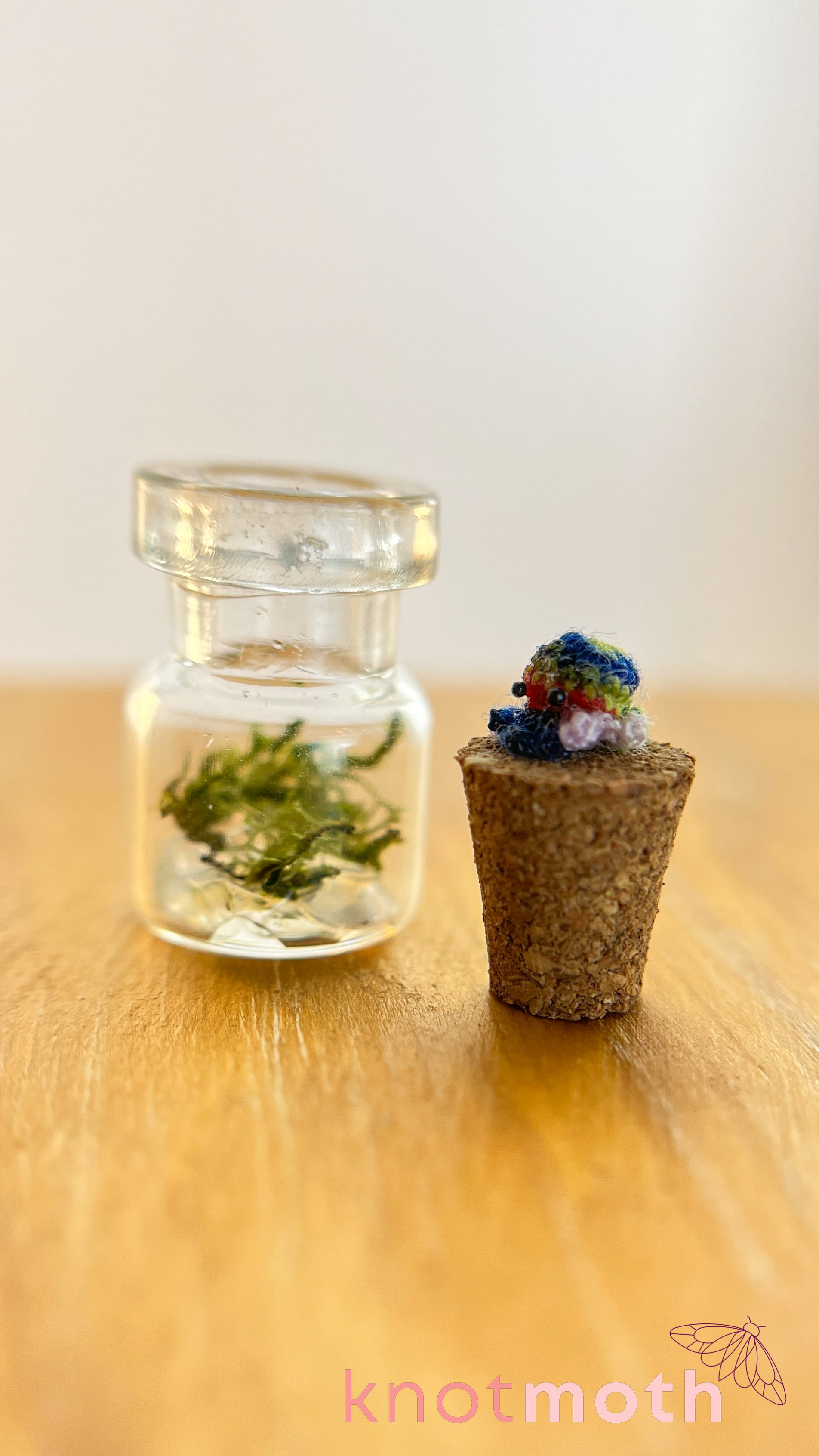 This dainty and intricately detailed removable micro crochet specimen jar is the perfect accessory to show off your love of handmade miniature fiber art!