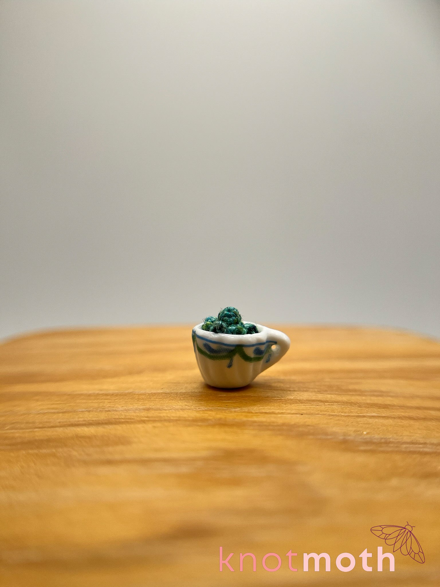 This micro-crochet octopus teacup is the perfect handmade trinket for anyone who loves miniature fiber art! Meticulously stitched with hand-dyed thread and a 0.5 mm crochet hook, you'll be amazed and charmed by the intricacy and whimsy of this piece.