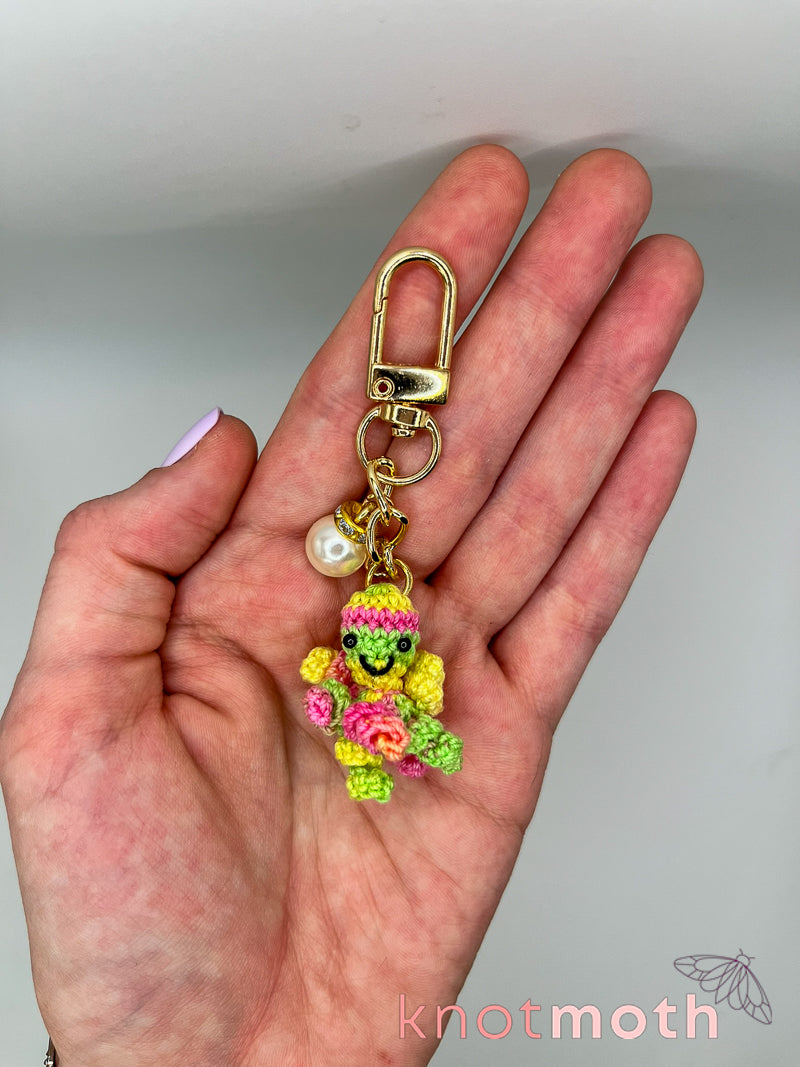 This adorable micro crochet octopus and pearl charm keychain is the perfect handmade accessory that will bring a smile to your face each time you reach for your keys!
