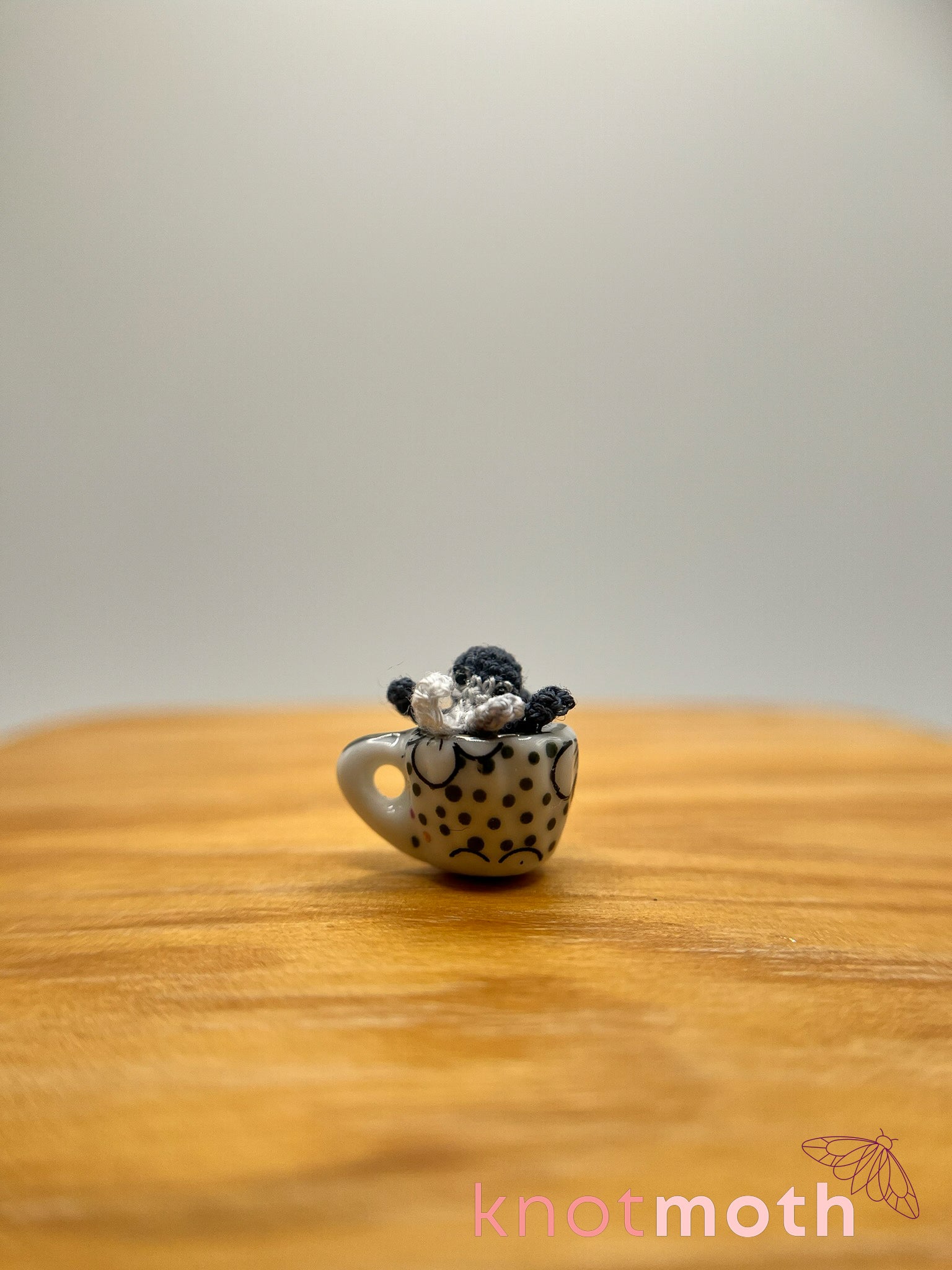 This micro-crochet octopus teacup is the perfect handmade trinket for anyone who loves miniature fiber art! Meticulously stitched with hand-dyed thread and a 0.5 mm crochet hook, you'll be amazed and charmed by the intricacy and whimsy of this piece.