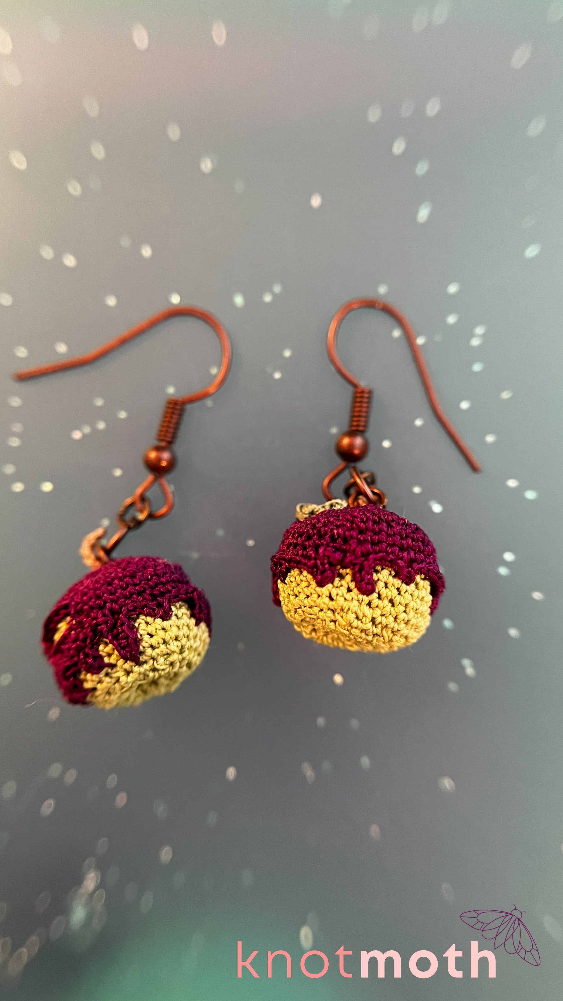 These fun extra-small micro crochet poisoned apple earrings are the perfect accessory for spooky art lovers! Pattern by FayniToys