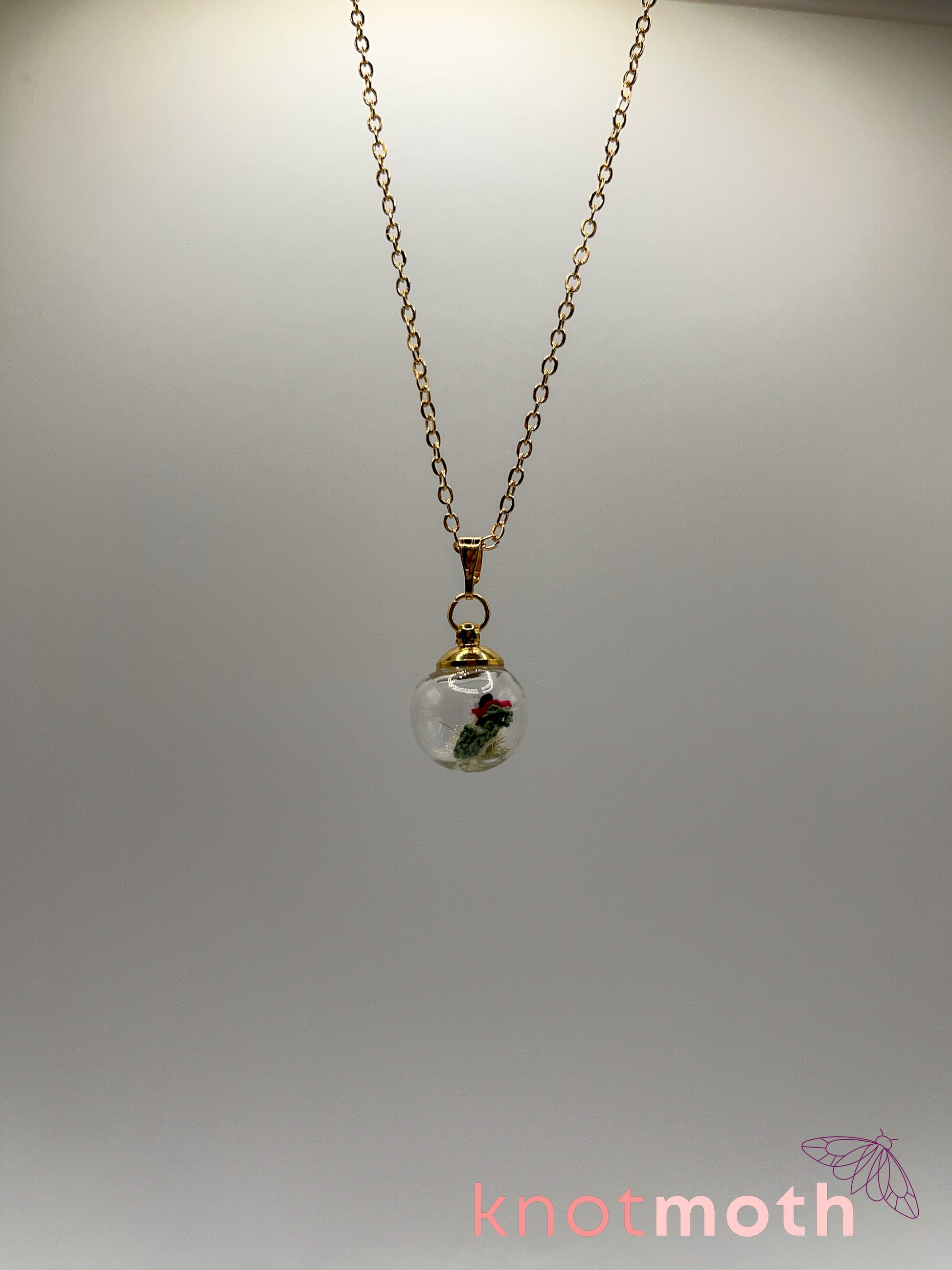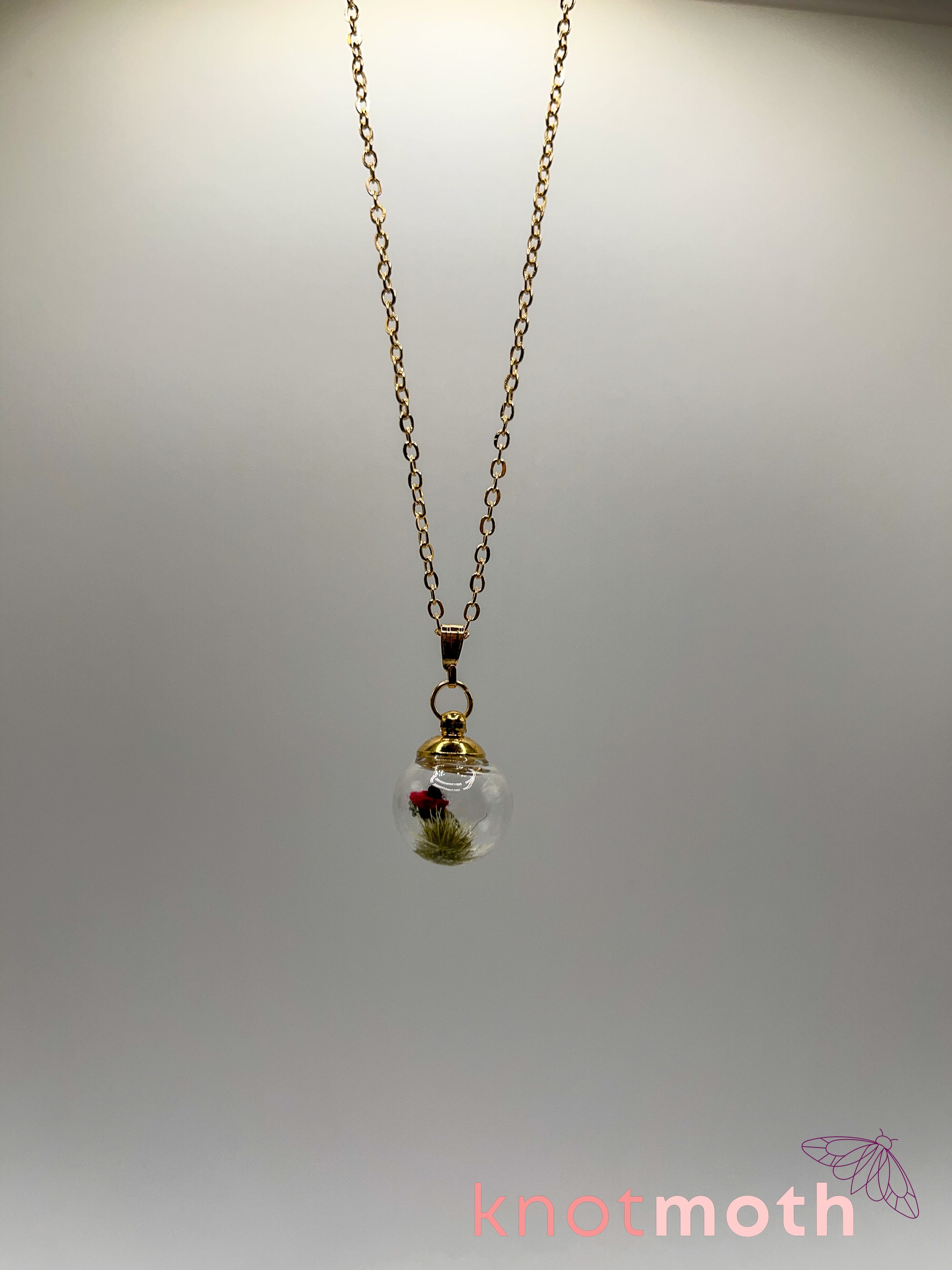 poppy flower & vertebra bone micro crochet mini globe necklace