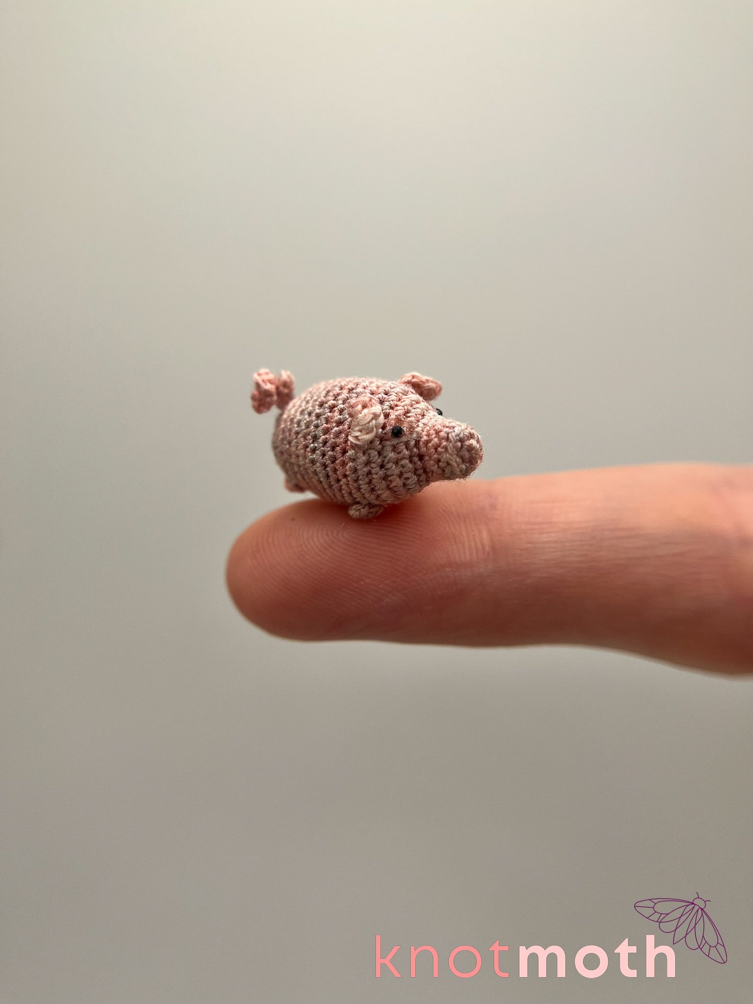 The micro-plushie is made with thread and a 0.5 mm crochet hook, and the tin is decorated with fake grass and leaves, dried flowers, moss, and a small "mud bath" made of dyed resin! You can take the tiny pig plushie and flower out of the protective tin and they're magnetic, so they double as needle-minders or fridge decorations.