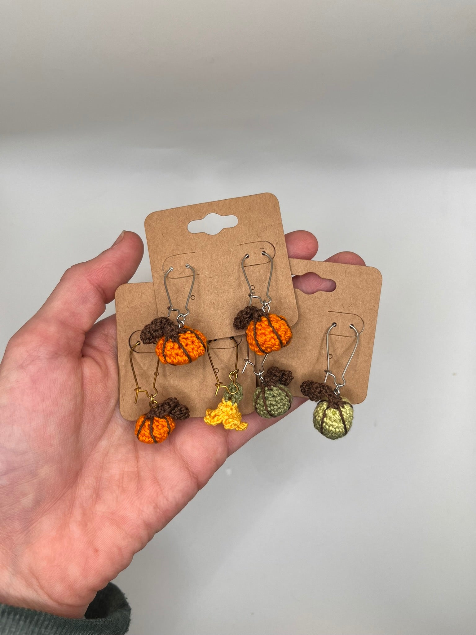These charming little pumpkins are hand-crocheted with care and a touch of autumn magic. Each earring is stitched from durable cotton thread using a fine hook, creating a lifelike miniature that’s full of texture and seasonal warmth.