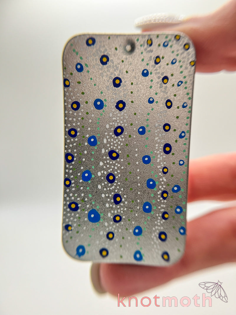 This charming and intricately detailed micro-crochet ray and pup kelp forest and coral scene inside a miniature metal tin will make you smile every time you slide off the tin's lid to take a peek, and it's small enough to carry inside your pocket!