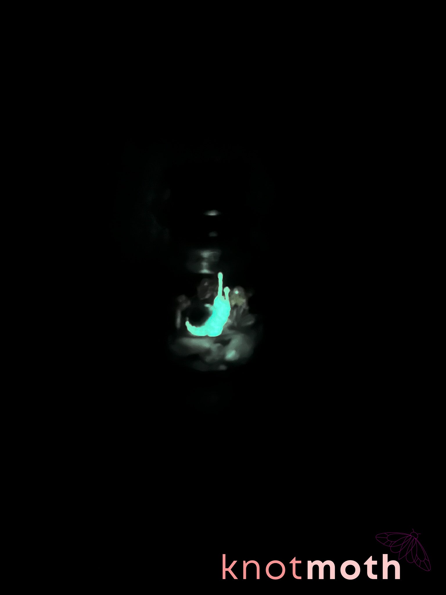 You can remove the amazingly tiny amigurumi doll to play with it and admire the hand-stitched details! Please note that you need to charge the UV-reactive thread with sunlight or a UV lamp to charge the thread before it will glow.