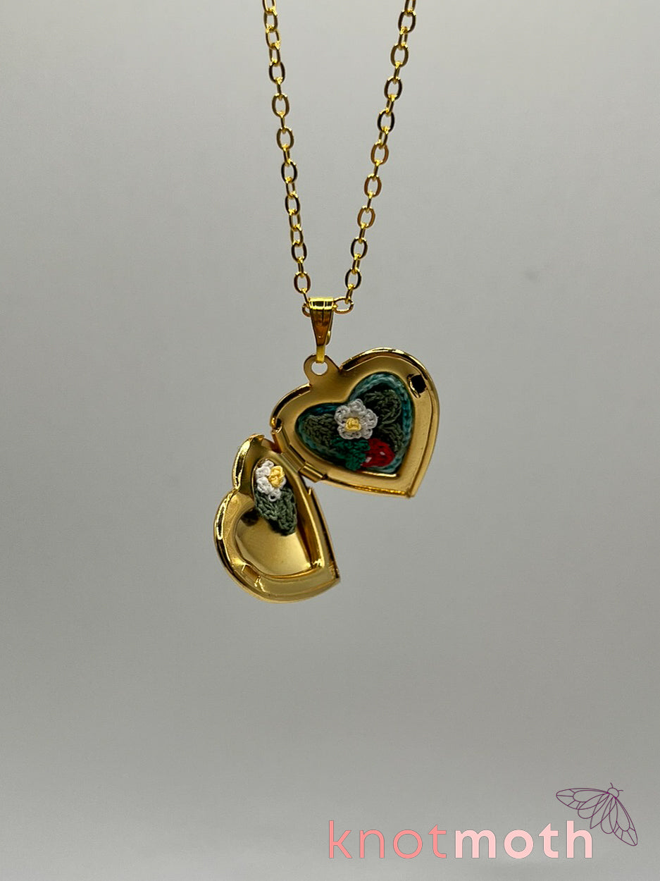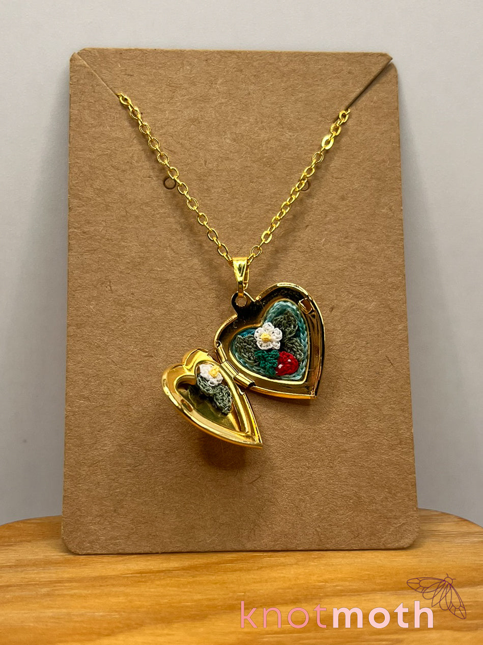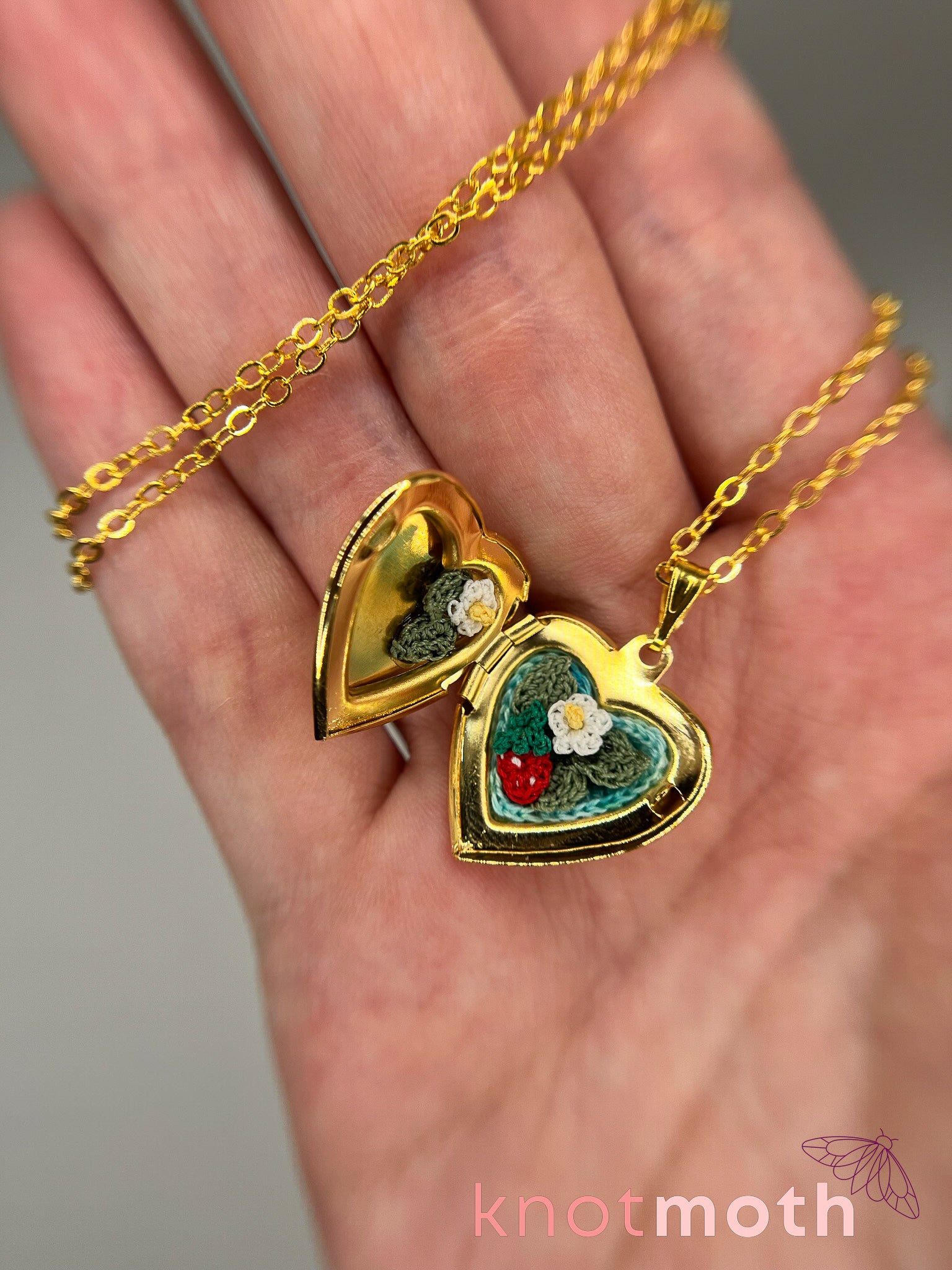 Strawberry with blooms (excellence) floriography micro-crochet locket