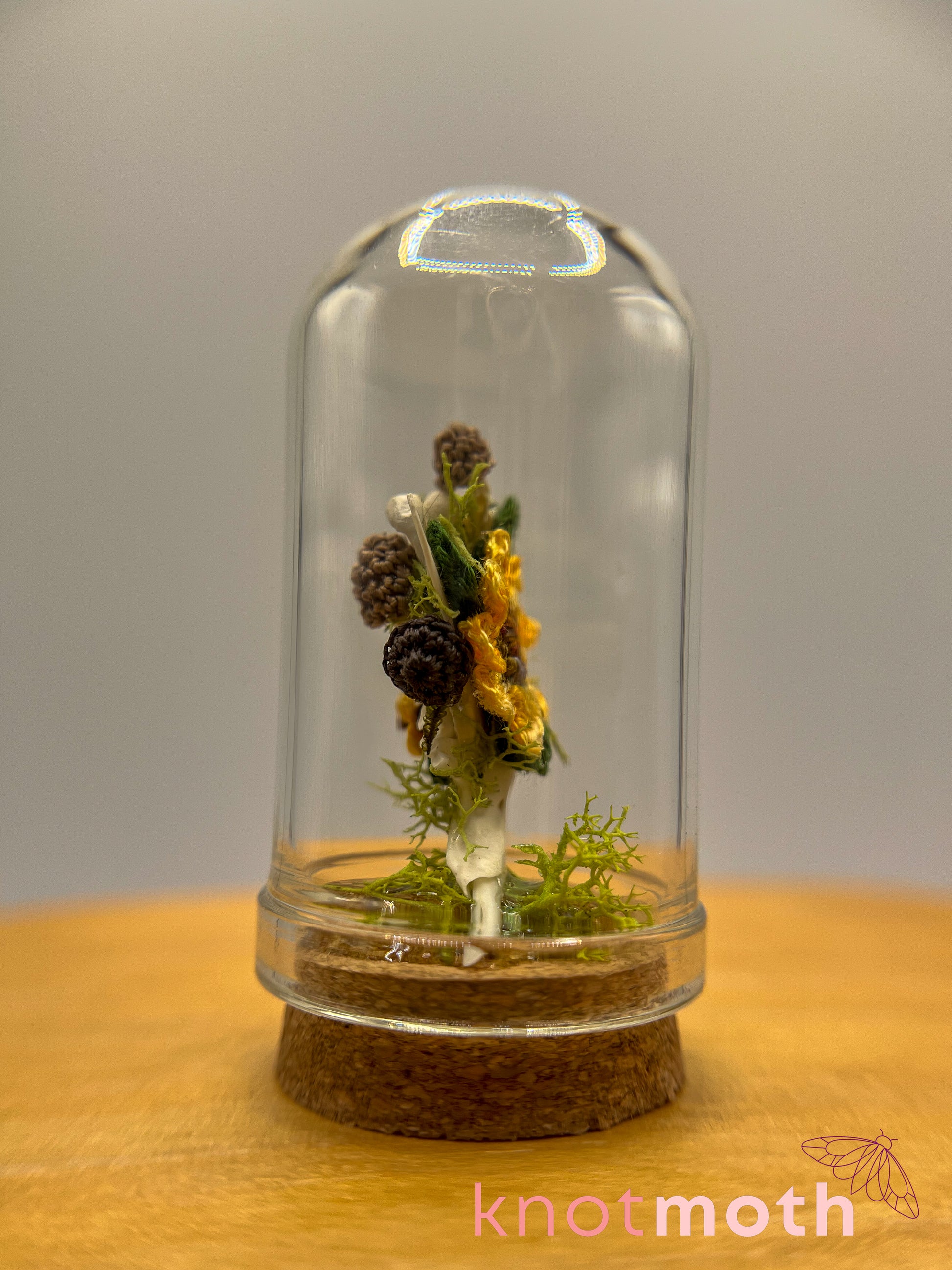 sunflower & mushrooms with jawbone micro crochet cloche jar
