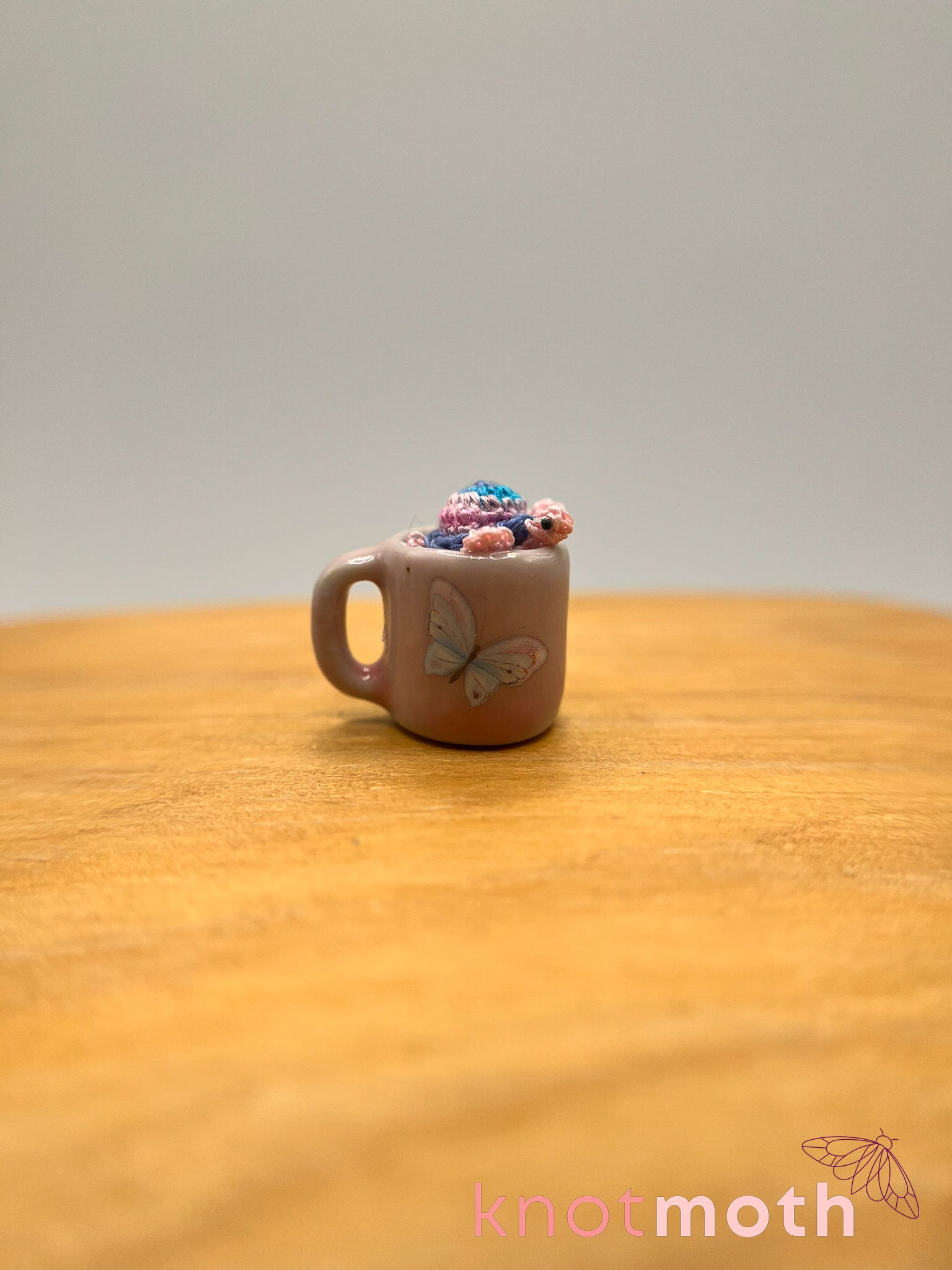 This micro-crochet turtle mug is the perfect handmade trinket for anyone who loves miniature fiber art! Meticulously stitched with hand-dyed thread and a 0.5 mm crochet hook, you'll be amazed and charmed by the intricacy and whimsy of this piece.