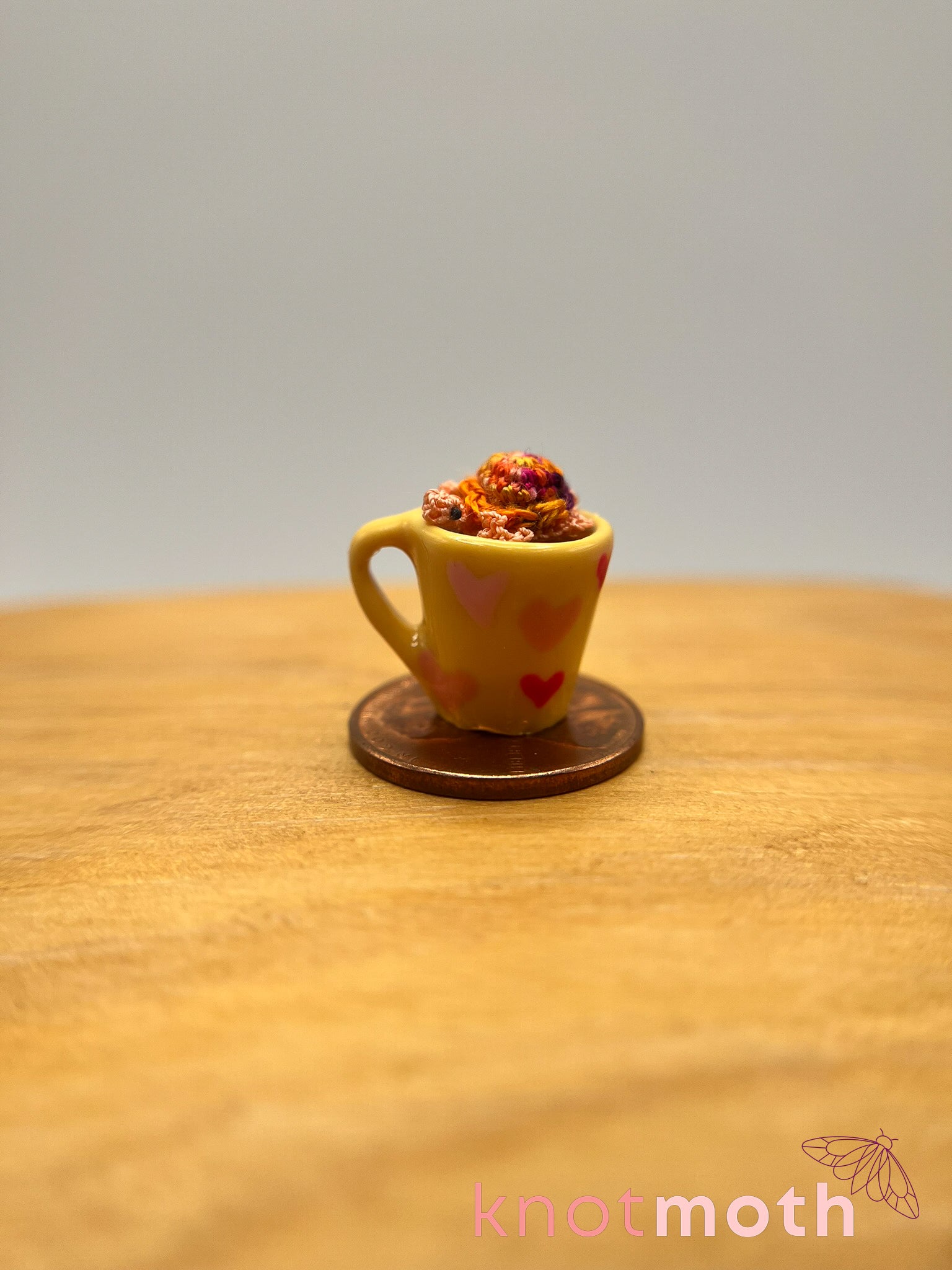 This micro-crochet turtle mug is the perfect handmade trinket for anyone who loves miniature fiber art! Meticulously stitched with hand-dyed thread and a 0.5 mm crochet hook, you'll be amazed and charmed by the intricacy and whimsy of this piece.