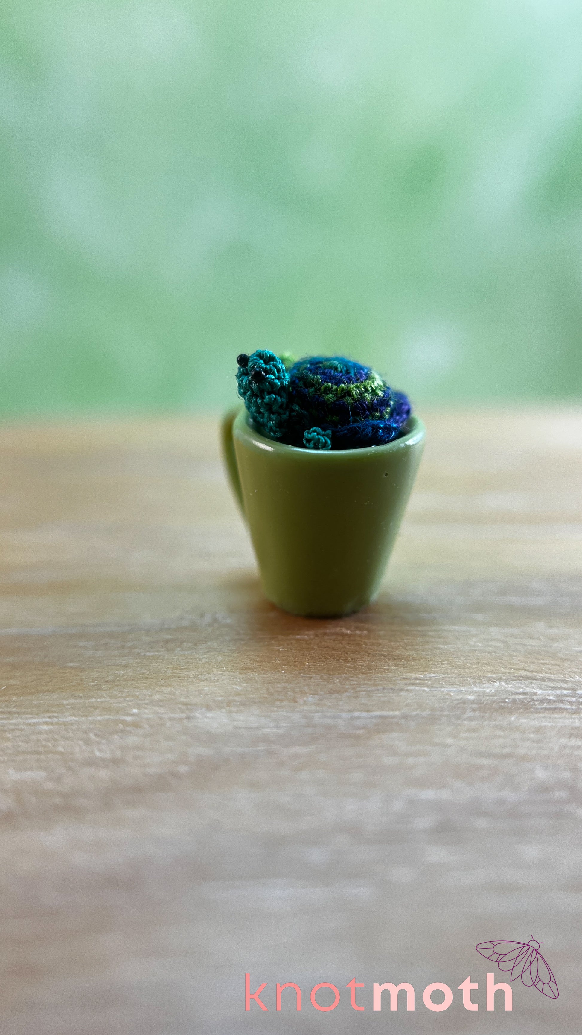 This dainty and intricately detailed removable micro crochet mug is the perfect accessory to show off your love of handmade miniature fiber art!