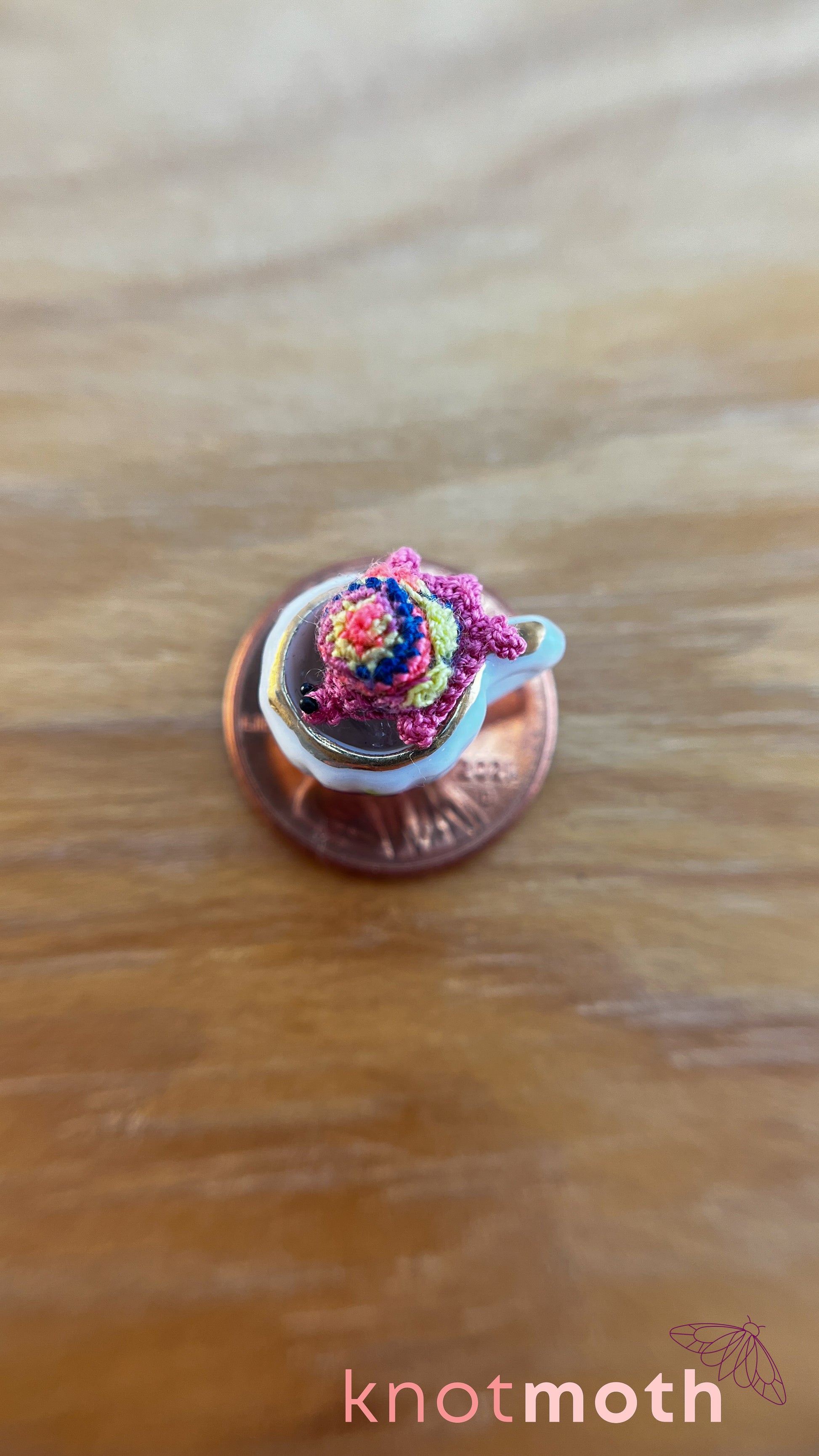 Teagan Tortoise Micro Crochet Teacup (Magnetic, Removable)