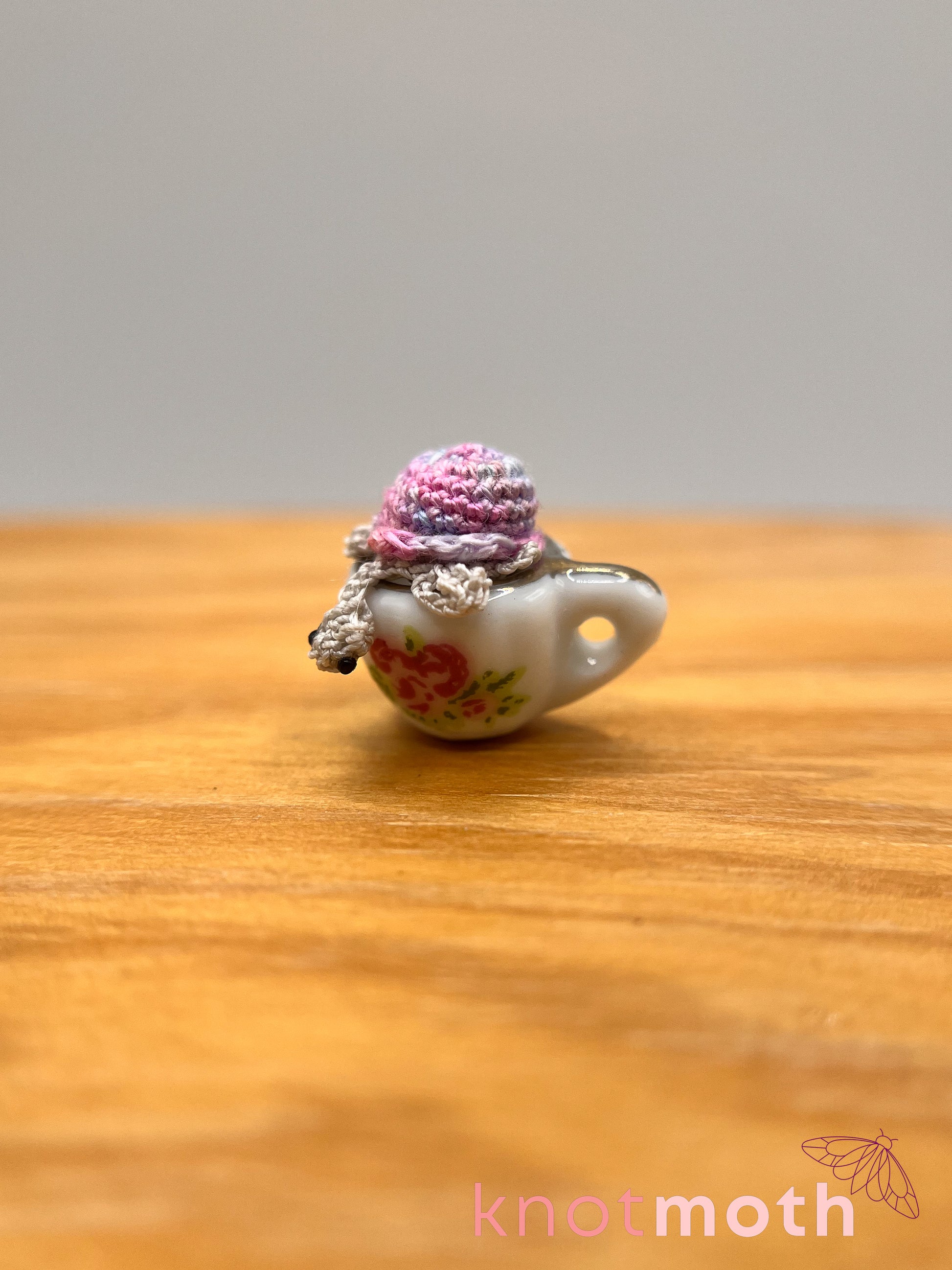 The tiny amigurumi snaps to the ceramic teacup magnetically and can be removed to admire the intricate details more closely!